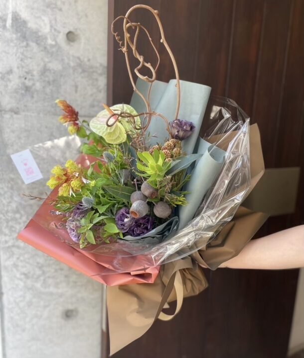 植物が持つナチュラルな姿を大切に季節のお花を束ねてお届けします。